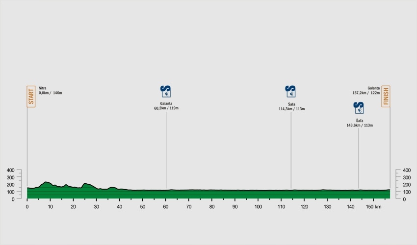 Posledná, 157 kilometrov merajúca, etapa vedúca z Nitry do Galanty je určená čistokrvným šprintérom. Na trati sa nenachádza žiadne hodnotené stúpanie. V závere tak opäť uvidíme hromadný dojazd. Na zozname favoritov tak nájdeme špurtérov ako Fabio Jacobsen, Christophe Laporte či Matteo Pelucchi.