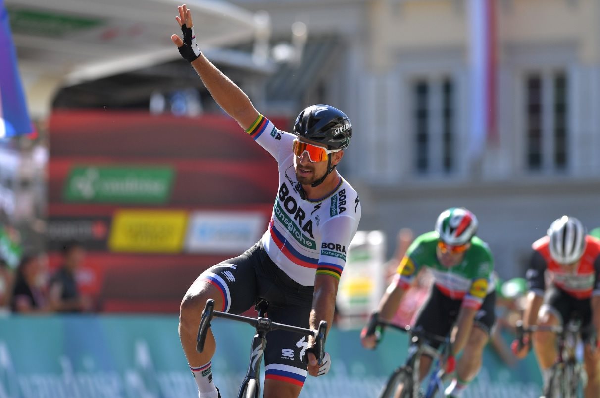 Trojnásobný majster sveta Peter Sagan zvíťazil v tretej etape Okolo Švajčiarska po záverečnom hromadnom dojazde, keď začal špurtovať z druhej pozície a v špurte do kopca nedal svojim súperom šancu.